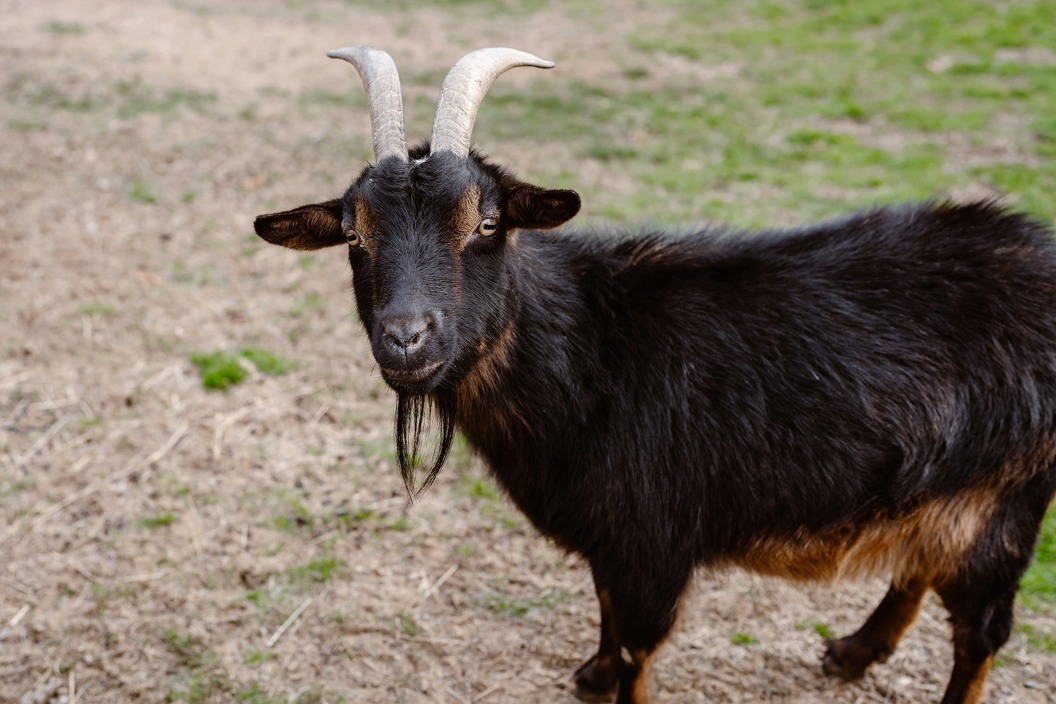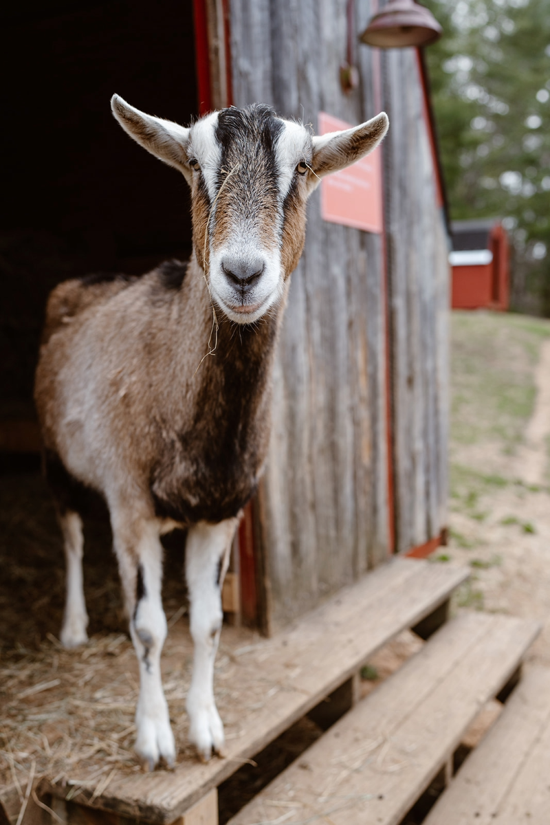 Kahluah was surrendered after her partner goat passed away. She quickly joined the herd and now enjoys sunshine, companionship, and attention from visitors.