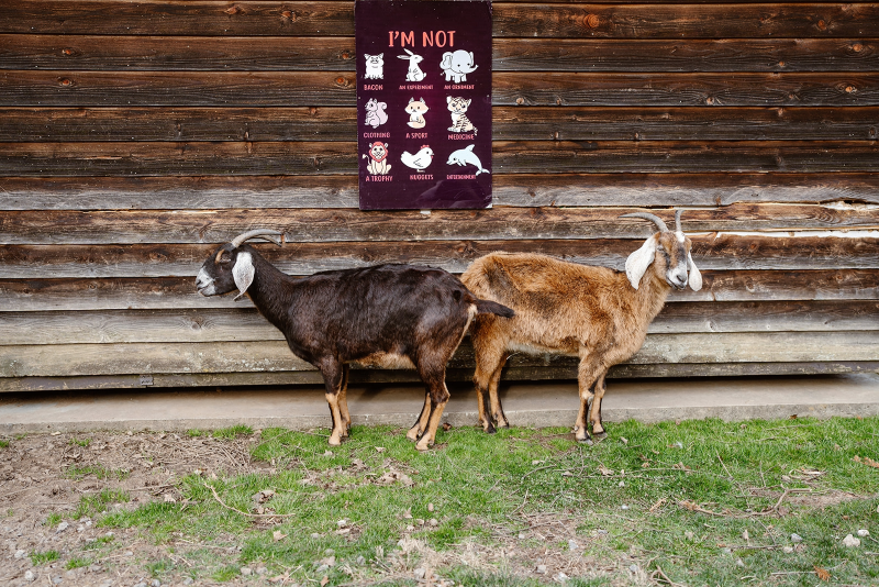 Fifi and Bambi are a mother daughter duo. They are Lamanchas, known for their short ears. They were rescued from neglect thanks to a kind neighbor who intervened. These bonded ladies are thriving now and show us how deeply animals connect, just like people do.
